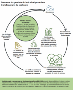 Les utilisations de la fibre de bois ne cessent d’augmenter. La fibre de bois sert notamment à fabriquer des vêtements, des pièces d’automobiles, des produits chimiques et des systèmes de construction avancés, et offre une solution de rechange qui permet de stocker du dioxyde de carbone et de remplacer des produits à plus fortes émissions de CO2. Le bois (et sa teneur en carbone) atteindra éventuellement sa fin de durée utile et sera éliminé.